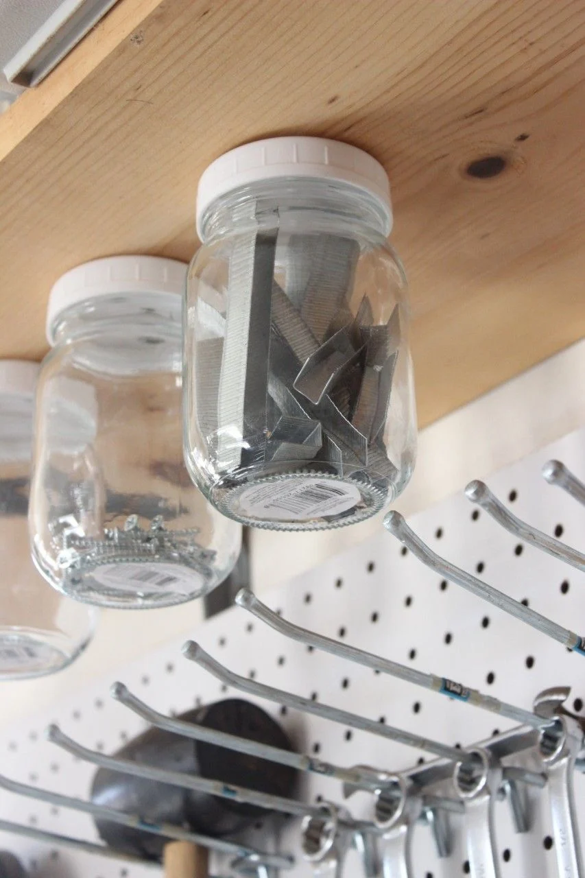 Parafusos, tachas, pregos, porcas e outros materiais de consumo muitas vezes sobram após um projeto e acabam perdidos entre as ferramentas. Por isso, nossa última sugestão é usar potes, sim. Potes! Dessa forma, você pode reunir aqueles pregos restantes de um projeto, aquele parafuso sobressalente de outro, e assim por diante. Além de ser extremamente simples de implementar, você economiza ao usar esses materiais em vez de comprar novos.